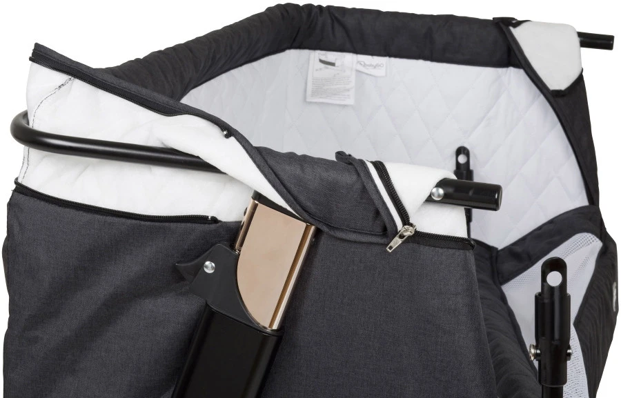 Dit mooie Babygo wiegje bevordert het samen slapen, waardoor je baby ’s nachts dicht bij je is en toch in zijn of haar eigen bedje ligt. Het wiegje is zwart van kleur met een roségouden frame, hij is eenvoudig te monteren en demonteren en de bekleding kan verwijderd en gewassen worden. Het grote voordeel van het wiegje is dat het mogelijk wordt om samen met je baby te slapen.