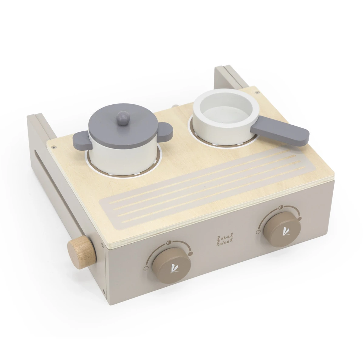 Je kleine zal zich een ware chef voelen als hij/zij aan het koken is op dit houten kookstel van Label Label! Deze compacte set heeft 2 kookpitten met draaiknoppen om ze in te stellen. Daarnaast is de set uitgerust met een steelpannetje, pannetje, peper- en zoutstel, een mes, spatel en een opscheplepel.