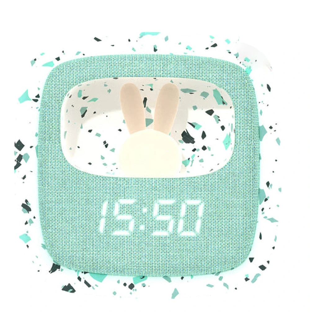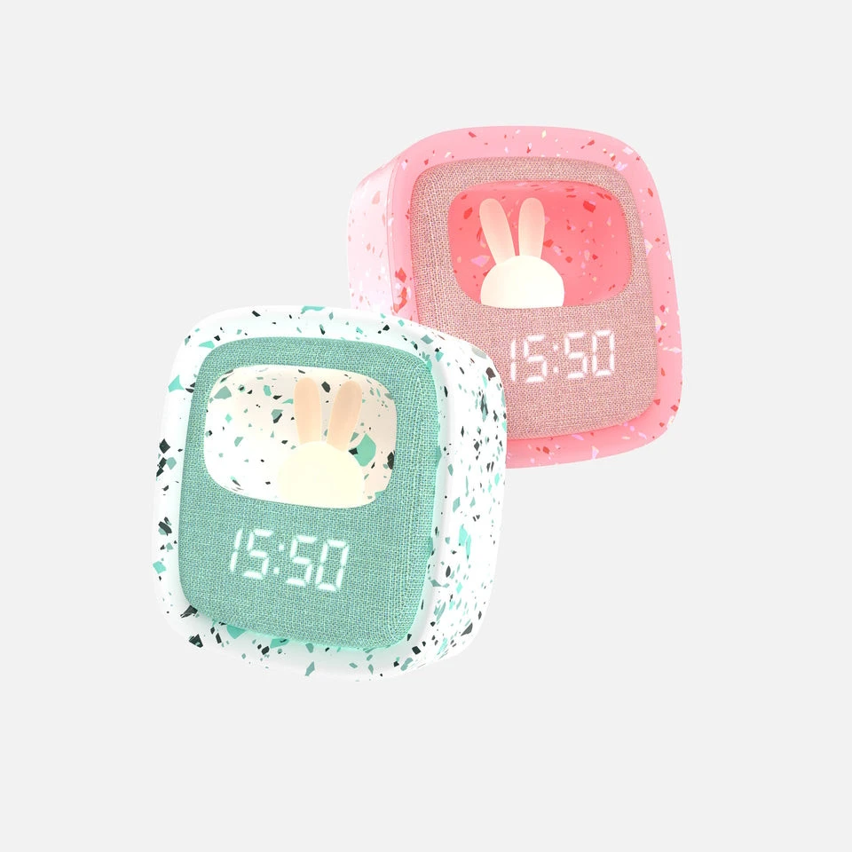 De wekker is tevens voorzien van een superschattig nachtlampje in de vorm van een lief, klein konijntje. De wekker is voorzien van een oplaadbare accu (micro USB, 5V) waarmee je tot 14 uur lang voorzien bent van de juiste tijd en een kalmerend lampje. Voldoende tijd dus voor de langste dutjes!